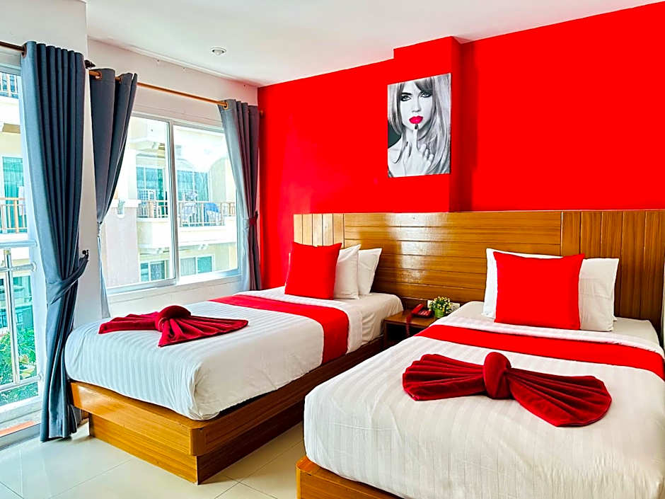 This family room provides a rooftop pool. The spacious family room offers air conditioning, a private entrance, a balcony with a quiet street view as well as a private bathroom boasting a walk-in shower. The unit has 2 beds.